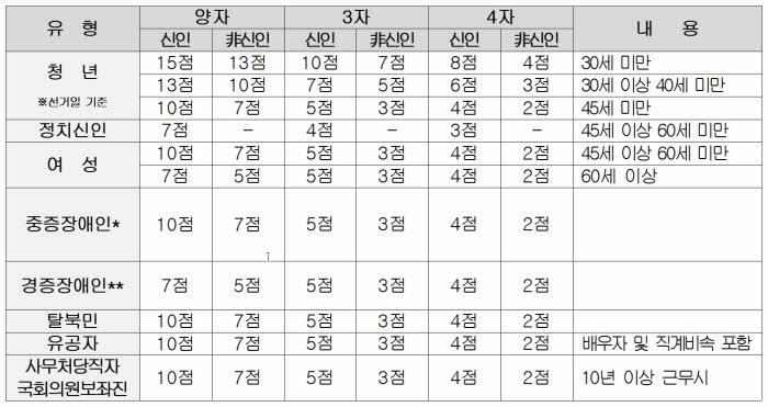 û³â(30¼¼~45¼¼). Á¤Ä¡½ÅÀÎ(45¼¼ ÀÌ»ó 60¼¼ ¹Ì¸¸), ¿©¼º(45¼¼ ÀÌ»ó 60¼¼ ¹Ì¸¸, 60¼¼ ÀÌ»ó), ÁßÁõÀå¾ÖÀÎ, °æÁõÀå¾ÖÀÎ, Å»ºÏ¹Î, À¯°øÀÚ(¹è¿ìÀÚ ¹× Á÷°èºñ¼Ó Æ÷ÇÔ), »ç¹«Ã³ ´çÁ÷ÀÚ¿Í ±¹È¸ÀÇ¿ø º¸ÁÂÁø(10³â ÀÌ»ó ±Ù¹«ÀÚ)·Î Çß´Ù.