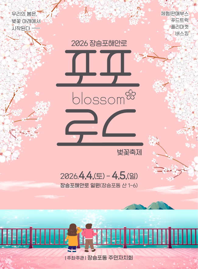 °ÅÁ¦½Ã Àå½ÂÆ÷ÀÇ ¾Æ¸§´Ù¿î ÇØ¾Èµµ·Î°¡ º¢²ÉÀ¸·Î ¹°µå´Â º½, ½Ã¹Î°ú °ü±¤°´ÀÌ ÇÔ²²ÇÏ´Â ¡®2026³â Àå½ÂÆ÷ÇØ¾È·Î Æ÷Æ÷·Îµå º¢²ÉÃàÁ¦¡¯°¡ ¿À´Â 4¿ù 4ÀϺÎÅÍ 5ÀϱîÁö ÀÌÆ²°£ Àå½ÂÆ÷ÇØ¾È·Î ÀÏ¿ø(Àå½ÂÆ÷µ¿ »ê 1-6¹øÁö)¿¡¼ °³ÃֵȴÙ.