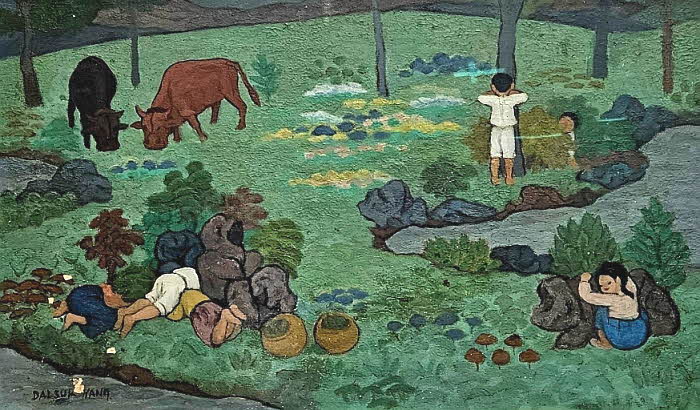 ÇØÁ¶À½¹Ì¼ú°ü ÀÓÈ£°Ç °üÀåÀº ¡°¾ç´Þ¼®Àº °íÇâ °ÅÁ¦ ³óÃÌÀÇ ¼Ò¿Í ¸ñµ¿, ¾ÆÀ̵éÀ» ÁÖ¿ä ¼ÒÀç·Î »ï¾Æ Àΰ£°ú ÀÚ¿¬ÀÌ ¾î¿ì·¯Áø ÆòÈ·Î¿î ¼¼°è¸¦ ±×¸° Ȱ¡ÀÌ´Ù. ¾î¸° ½ÃÀýÀÇ °¡³°ú °í´ÜÇÑ »îÀÇ ±â¾ïÀ» ¹ÙÅÁÀ¸·Î Çö½ÇÀÇ °íÅëÀ» Á÷Á¢ µå·¯³»±âº¸´Ù µû¶æÇÏ°í ¼ø¼öÇÑ µ¿½ÉÀÇ À̹ÌÁö·Î ½ÂȽÃÄ×´Ù. ÀÛǰ ¼Ó¿¡´Â ´Ü¼øÈµÈ ÇüÅÂ¿Í ºÎµå·¯¿î »öä°¡ µÎµå·¯Áö¸ç, ±×¸² °¨»óÀÚ¿¡°Ô Æí¾ÈÇÔ°ú Á¤¼¸¦ ´À³¢°Ô ÇÑ´Ù. ¶ÇÇÑ ¼Ò¿Í ¾ÆÀÌÀÇ ¹Ýº¹Àû µîÀå¿¡´Â ³ëµ¿°ú »î, ±×¸®°í Èñ¸Á°ú ¹Ì·¡¿¡ ´ëÇÑ »ó¡Àû Àǹ̰¡ ´ã°Ü ÀÖ´Ù. ±×ÀÇ È¸È´Â ´Ü¼øÇÑ ³óÃÌ Ç³°æÀ» ³Ñ¾î Àΰ£ º»¿¬ÀÇ ¼ø¼ö¼º°ú ÀÌ»óÀû »î¿¡ ´ëÇÑ ¿°¿øÀ» Ç¥ÇöÇÑ ¸ñ°¡Àû ¼¼°è¶ó ÇÒ ¼ö ÀÖ´Ù.¡±¶ó°í °Á¶Çß´Ù.